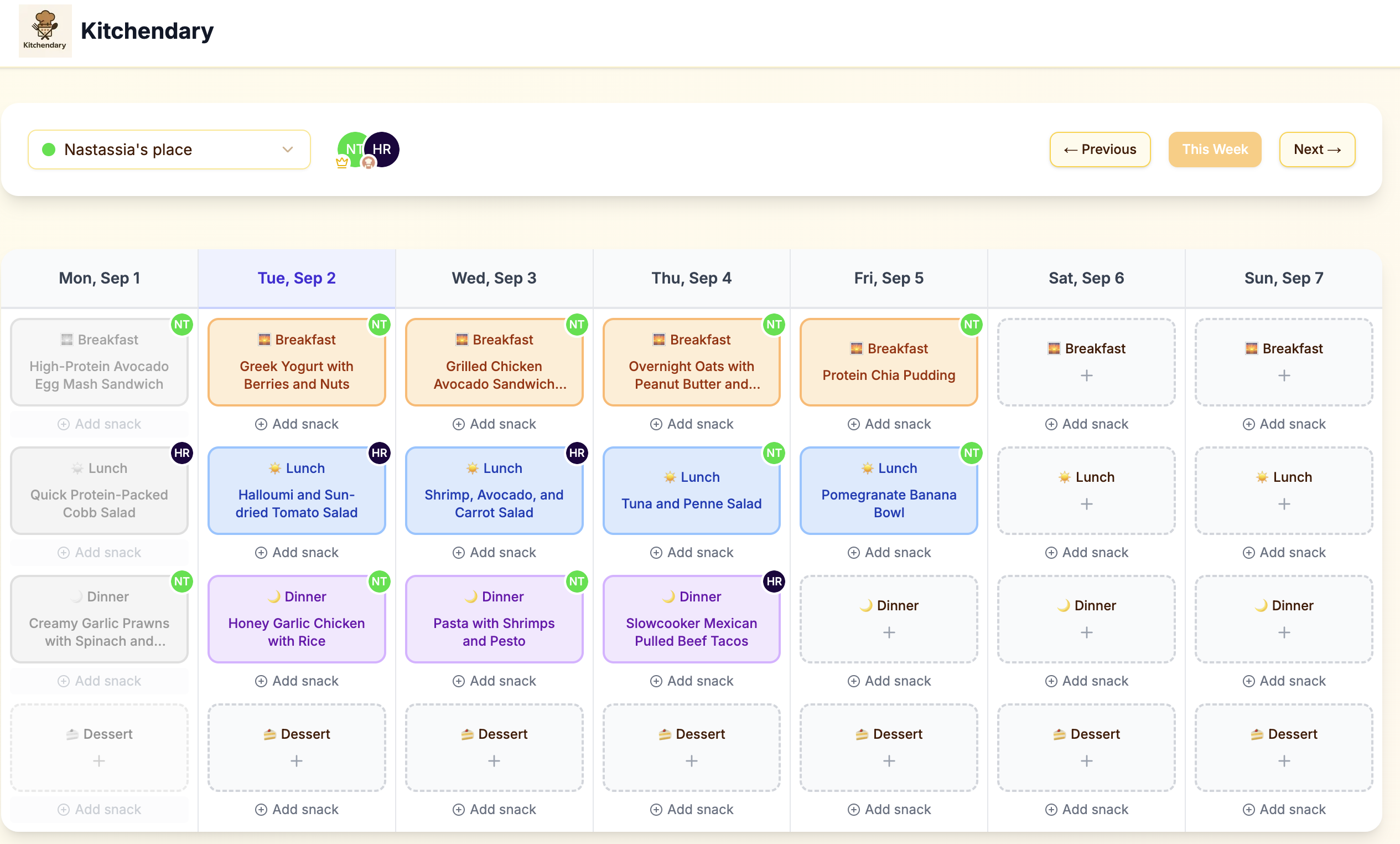 So I couldn’t hold myself in pants and instead of memorizing stupid things to make them on automation I have made a new product instead: collaborative weekly cooking planner Kitchendary
