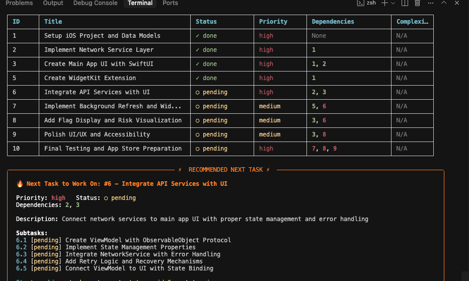 .cursorrulesfor writing iOS code. - I used TaskMaster to split the job into tasks.